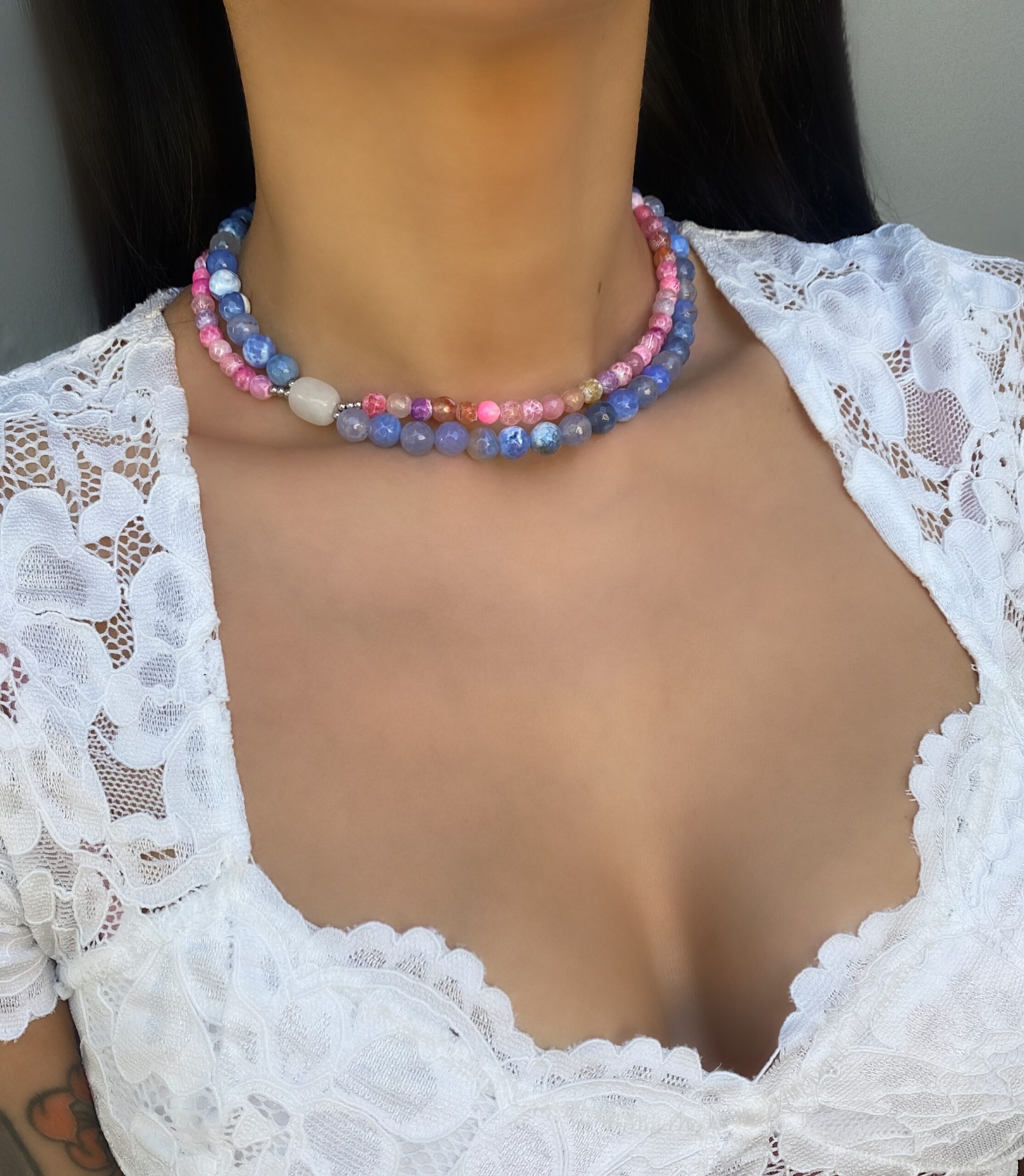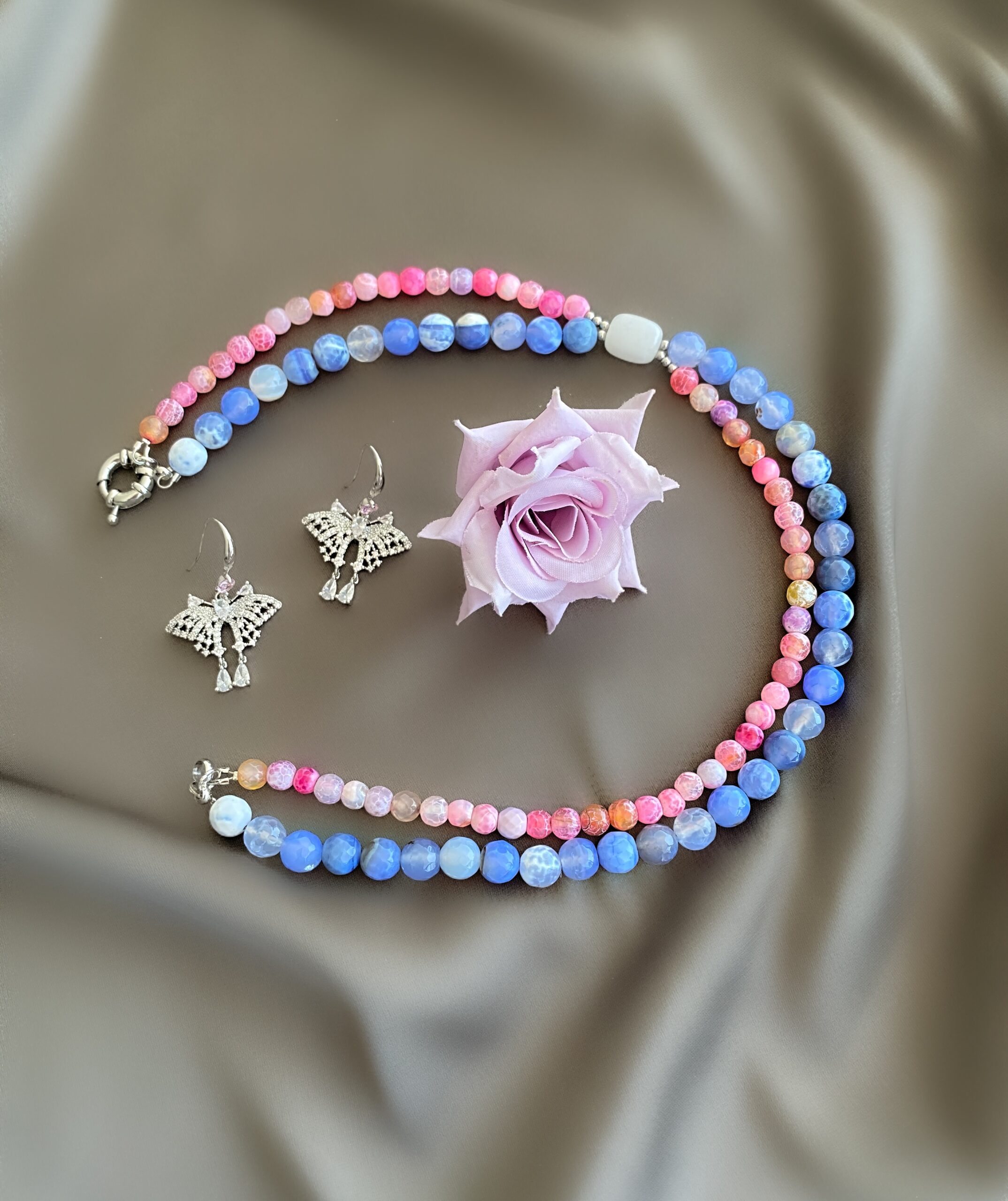 «ANNE» Semi-Fine Natural Agate Necklace & Earrings Jewellery Set