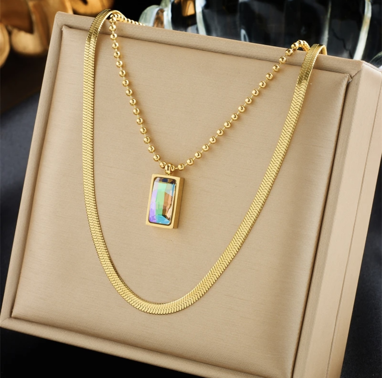 «COLORFUL CRYSTAL» New Fashion Waterproof Crystal Pendant Necklace For Women / Gold Color⠀