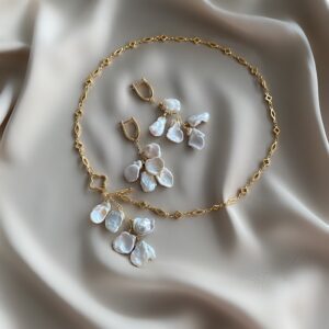 «DE PERLE» Luxury Semi-Fine Natural Baroque Pearl Necklace & Earrings Jewellery Set ⠀