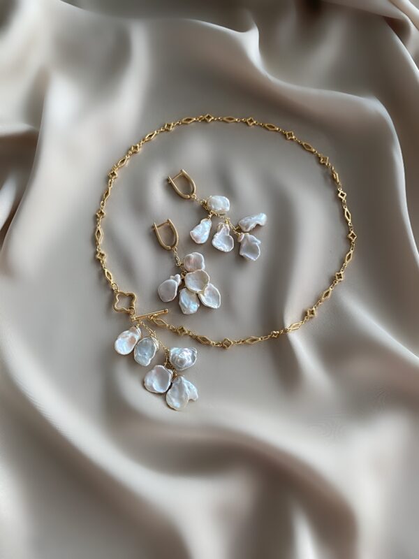 «DE PERLE» Luxury Semi-Fine Natural Baroque Pearl Necklace And Earrings Jewellery Set ⠀