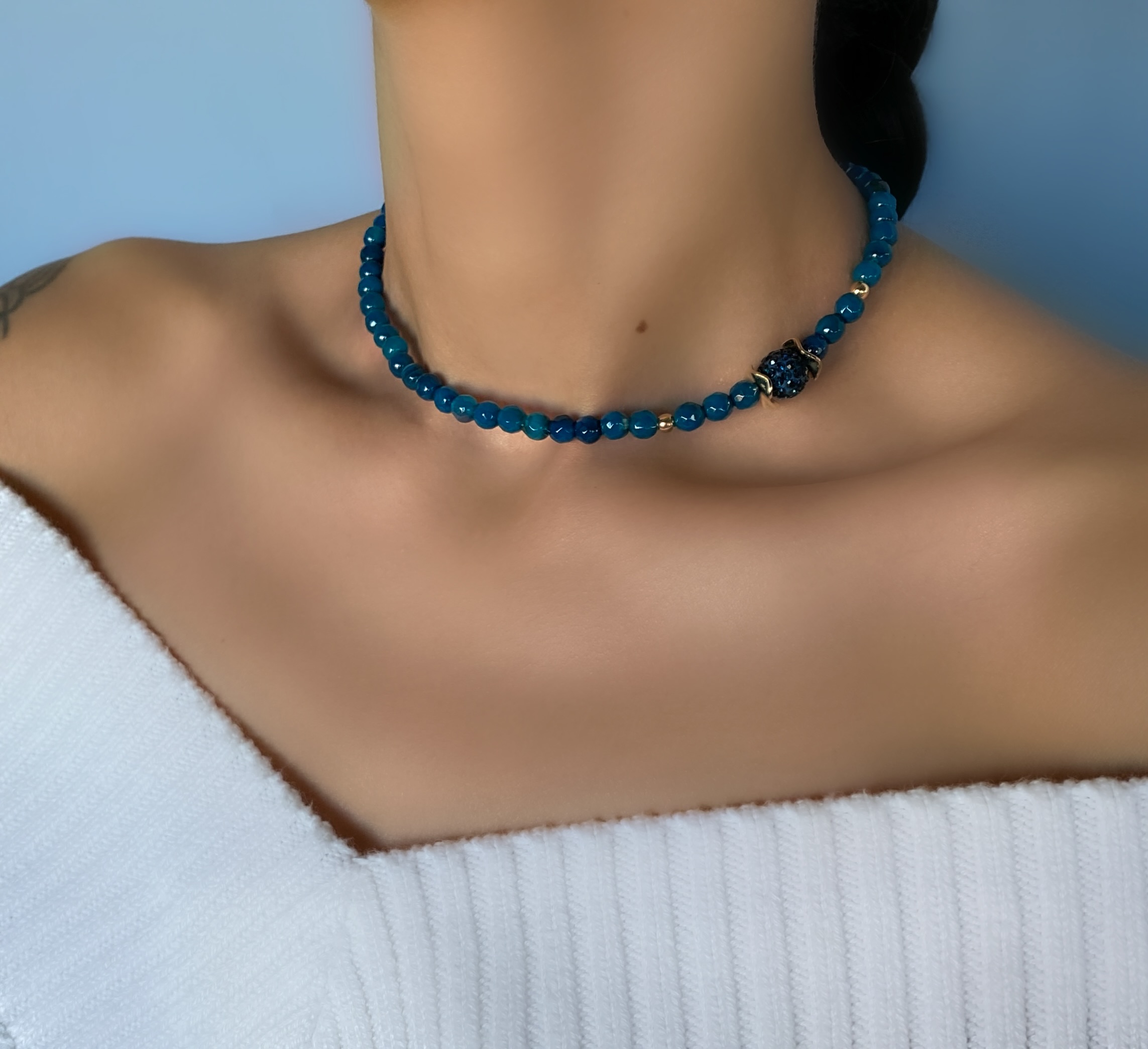 «LAZURA» Semi-Fine Natural Stone Necklace Choker & Earrings Jewellery Set⠀