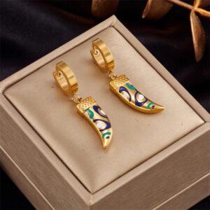 «MAGIC TOOTH» New Fashion Waterproof Pendant Necklace & Earrings Jewellery Set For Women / Gold Color⠀