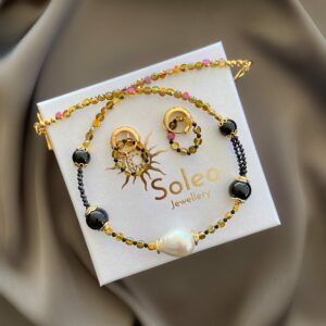 «NATELLA» Semi-Fine Luxury Natural Stone & Crystal Trendy Necklace And Earrings Jewellery Set