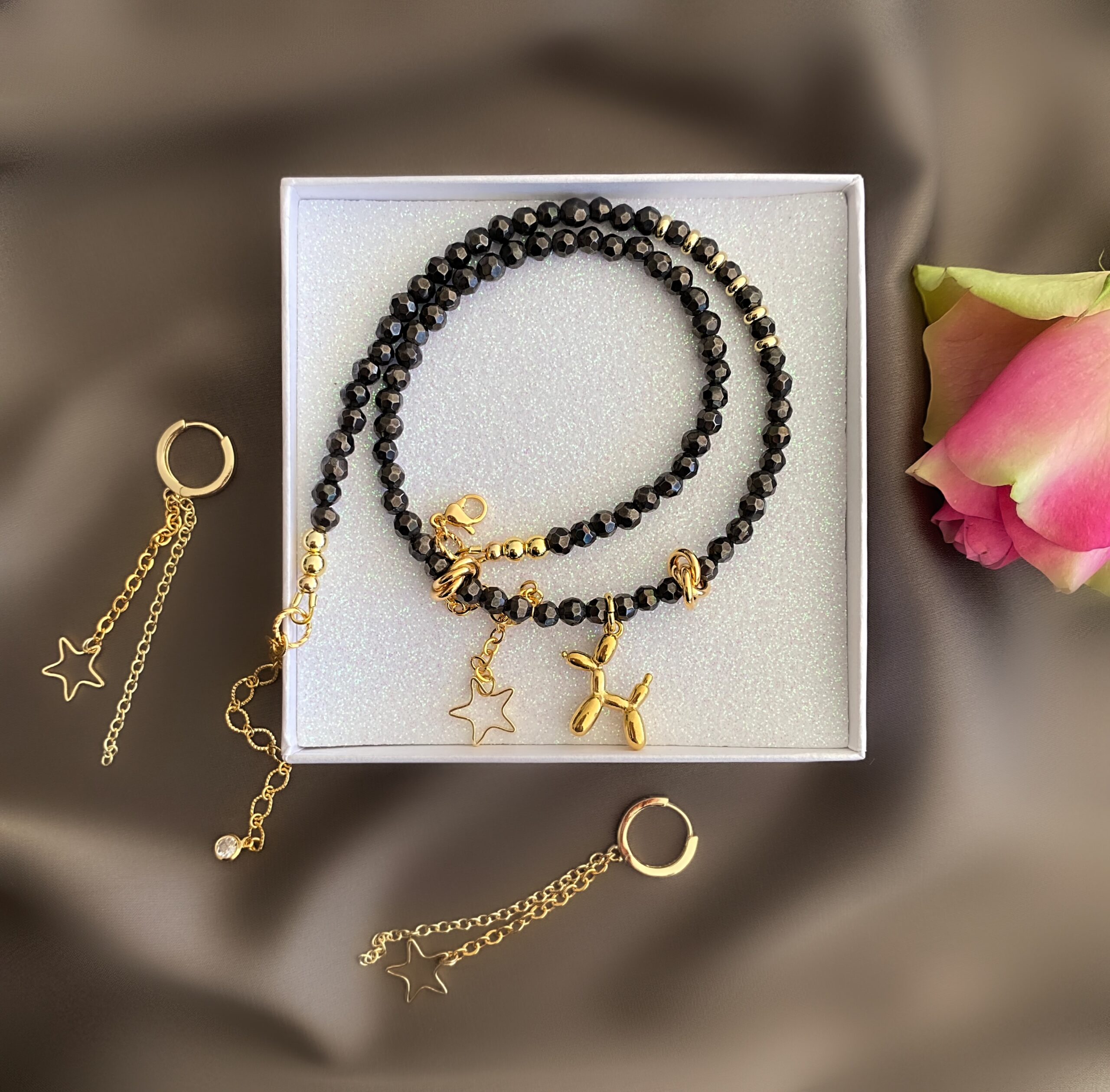 «POODLE» Semi-Fine Necklace With Trendy Pendand & Earrings Jewellery Set