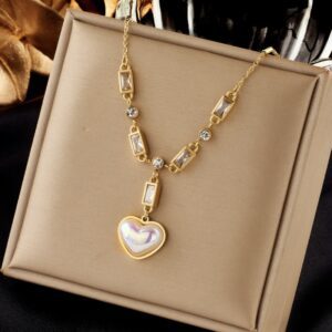 «SHINY HEART» New Fashion Waterproof Pendant Necklace For Women / Gold Color⠀